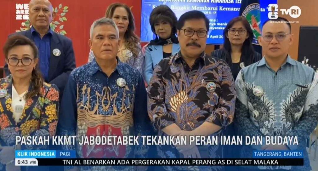 Tangerang》Jagamerahputih.com — Ketua Umum Kerukunan Kawanua Minahasa Tenggara (KKMT) Jabodetabek, Dr. Jan S. Maringka, SH, MH, CGCAE, menekankan pentingnya peran Kerukunan Kawanua Mitra dalam menjaga kekerabatan, menjaga Iman dan menjaga budaya Minahasa di perantauan. Hal itu disampaikan Jan dalam sambutannya di sela-sela acara ibadah Paskah bersama KKMT, Sabtu (18/4) di GMIM Providentia.